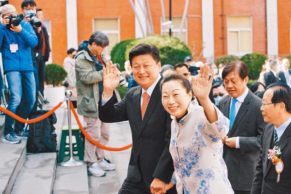 傅昆萁恢复国民党籍获准,图为傅昆萁(左)日前带着妻子花莲县长徐榛蔚(右)前往“立院”报到、宣誓。(图片来源:台湾“中时电子报”)