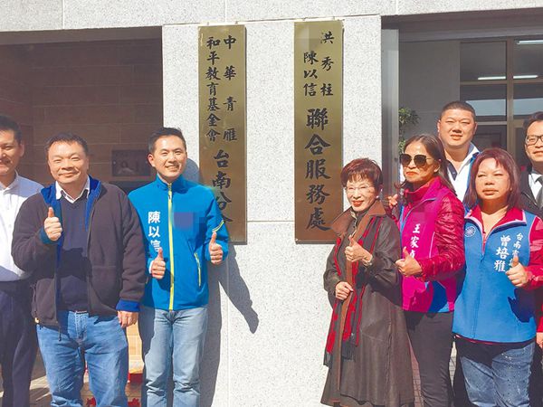 国民党前主席洪秀柱(前右三)与台南子弟、新科不分区“立委”陈以信(前左二)8日上午在台南市东区成立联合服务处。(图片来源:台湾“中时电子报”)