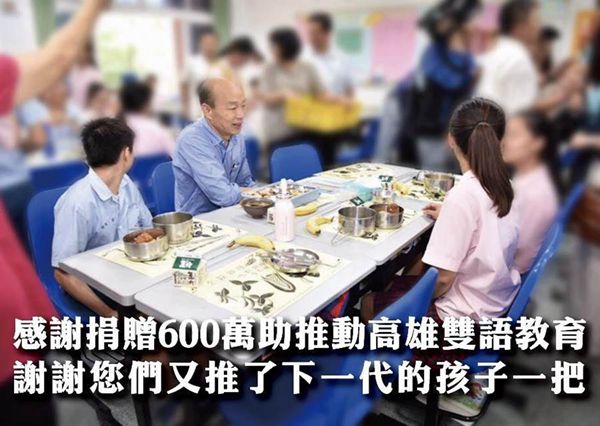 中国台湾网2月12日讯 据台湾“中时电子报”报道,高雄市长韩国瑜上任以来力推中英文双语教育,尽管被一些人不看好,但大部分民众还是很支持。昨日(11日),韩国瑜在脸谱网(Facebook)上发文感谢一位资助人,并表示,政策过程中可能会有些挫败、错误,但此时的协助更令人感动。