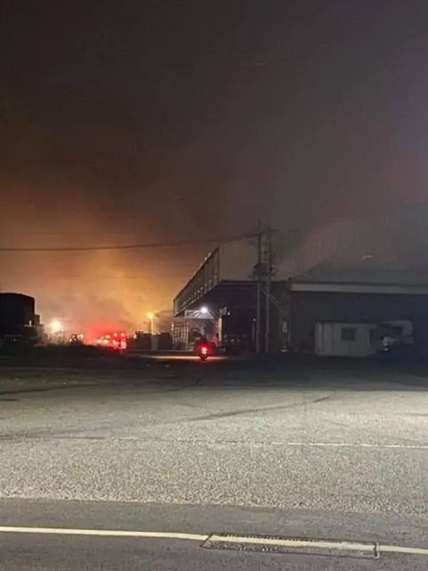 北港清洁队今夜起火,窜起大量浓烟,远望可见火势不小。(图片来源:台湾《联合报》)