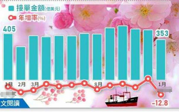 台湾地区1月份外销订单金额统计为353.1亿美元,7大类项目订单受到产业淡季及及春节因素,金额全面减少。(图片取自台媒)