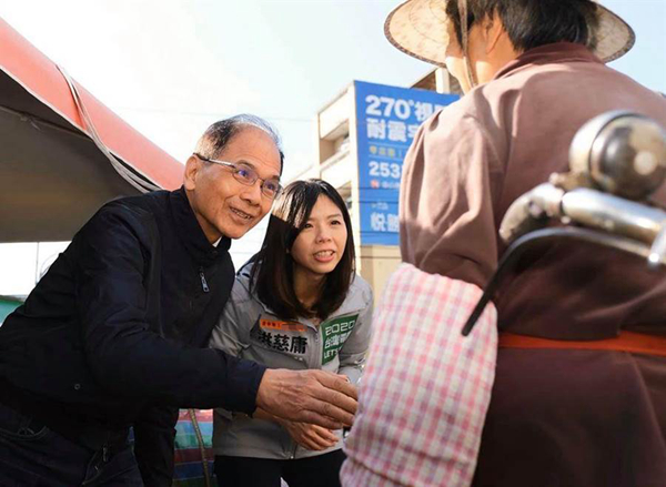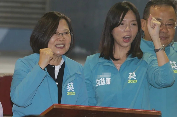 蔡英文(左)今年初多次到台中为洪慈庸(右)助选。(图片来源:台湾《联合报》)