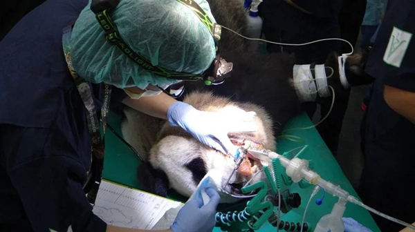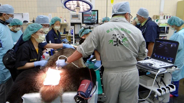 大熊猫繁殖工作小组为团团圆圆进行人工授精。(图片来源:台北市动物园)