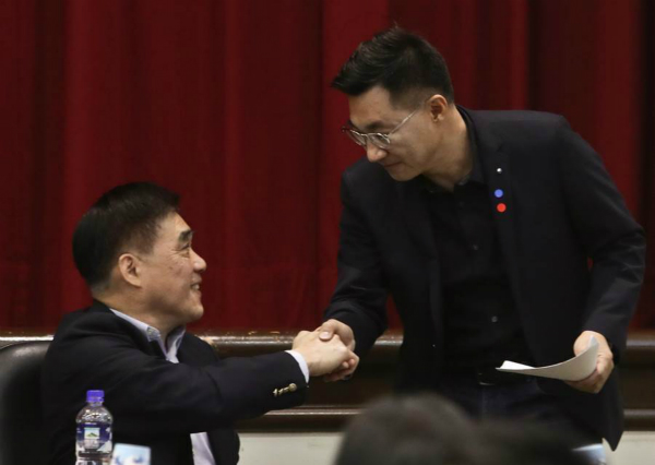 国民党主席候选人江启臣(右)、郝龙斌(左)。(图片来源:台湾“中时电子报”)