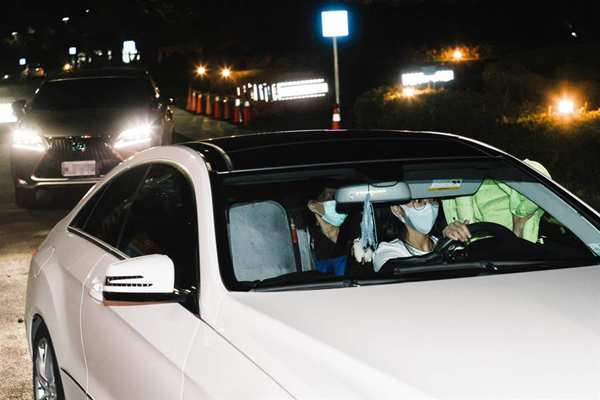 不少旅客由亲属开车接送离开检疫所。(图片来源:台湾“中时电子报”)