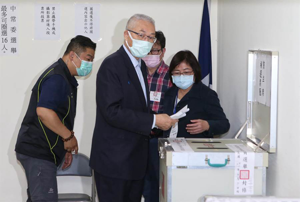 吴敦义现身投票。(图片来源:台湾“中时电子报”)
