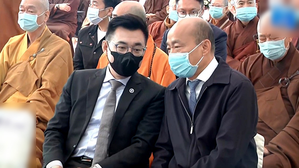 新任国民党主席江启臣与高雄市长韩国瑜一同出席公开活动。(来源:台湾“中时电子报”)