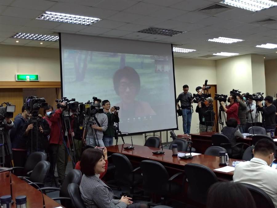 台东县长饶庆铃透过视讯参加国民党中常会。(图片来源:台湾“中时电子报”)