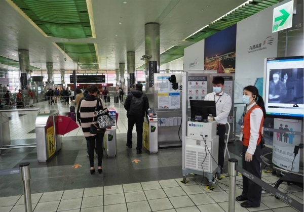 台湾桃园市高铁站设置红外线热显像仪。(图片来源:台湾“中时电子报”)