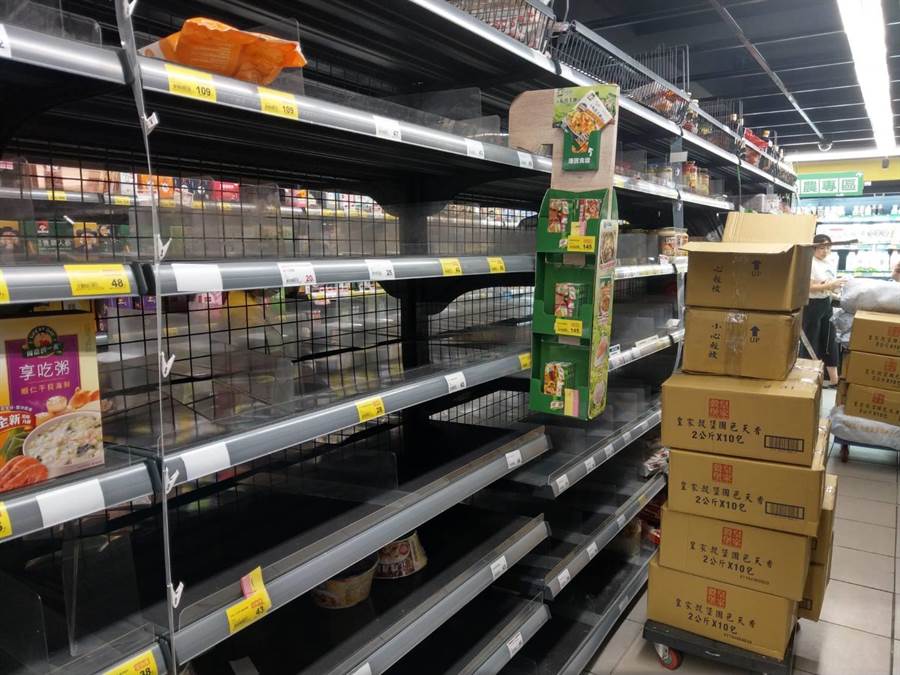 不过,有台湾网友昨天到附近卖场,发现架上所有东西都被抢购一空。通过网友发布的照片显示,货架上的东西已经一扫而空,只剩下标价,连米都所剩无几,让网友大叹。