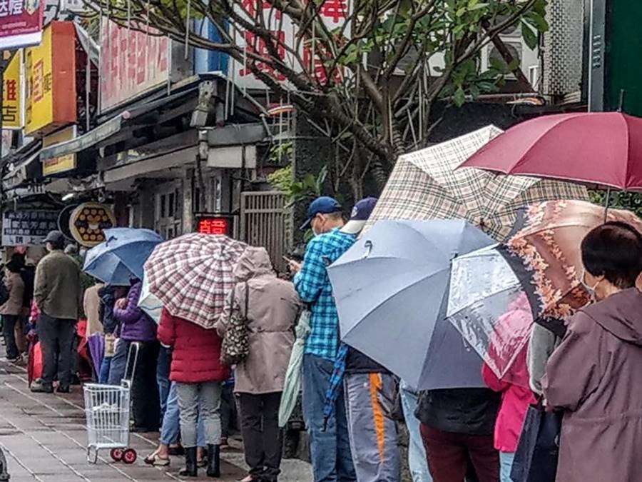 陈学圣分享台湾民众排队买口罩照片。(图片来源:台湾“中时电子报”)