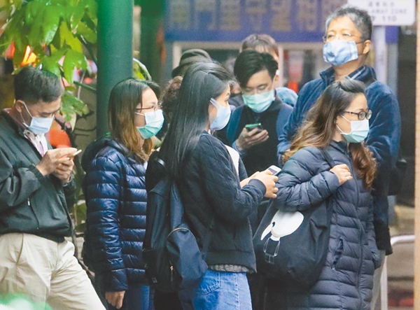 排队买口罩已成台湾的防疫日常,不少上班族只能赶下班时到药局排队,但未必排队就一定能买到。(图片来源:台湾“中时电子报”)