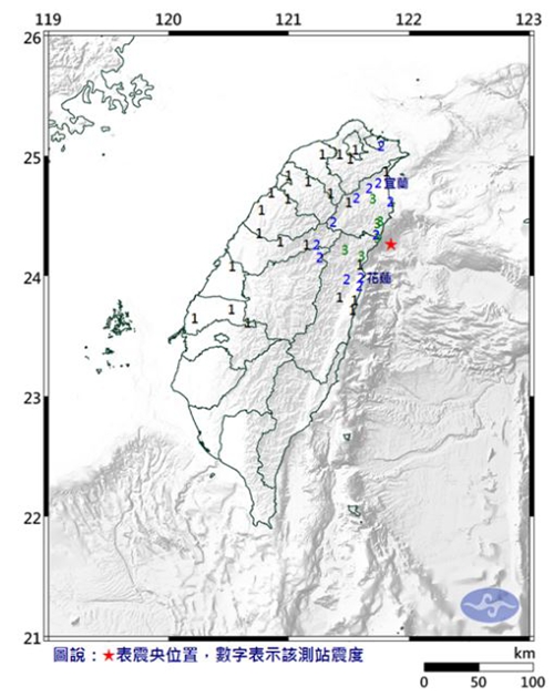 台湾花莲县海域发生4.4级地震。(图片取自台媒)