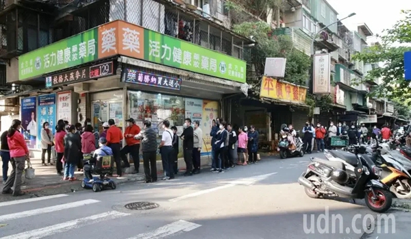 各地药局涌现排队人潮,不少人都深怕晚一步买不到。(图片来源:台湾《联合报》)