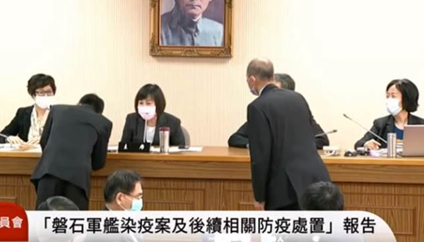 陈道辉表示,他用生命保证,绝对没有隐瞒任何疫情,如果知道已经有人感染,一定会遵照民进党当局防务主管部门的命令立刻返航。国民党“立委”吕玉玲问,是谁决定让人员在左营军港解散的?陈道辉说“我没这个权限”,但确实没有按照自己的想法去做,他是“按照命令执行”。他表示,这是他穿上白军服30年来最痛苦的时刻,强调没有做对不起大家的事。只是陈道辉话还没说完,敖以智、梅家树就马上到主席台把电话拿走。主持人刘宝杰在新闻节目《关键时刻》上直言,都什么时候了,这么大的事情,到底谁该负责,竟还没有答案,还在官官相护。