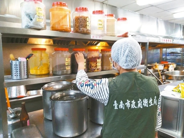 台南市卫生局人员前往新化高中供餐厂商厨房,调查学生集体腹泻原因。 (图片取自台媒)