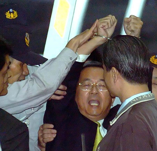 2008年11月,陈水扁被当时的“特侦组”羁押。(图片来源:台湾“中时电子报”)