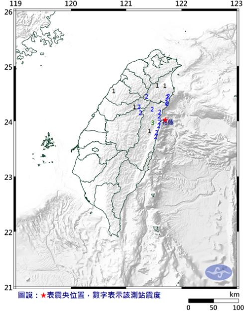 台湾花莲县近海发生4.4级地震。(图片取自台媒)