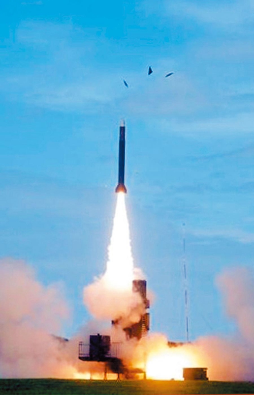 图为台军试射“天弓三型”导弹。(图片取自台媒)