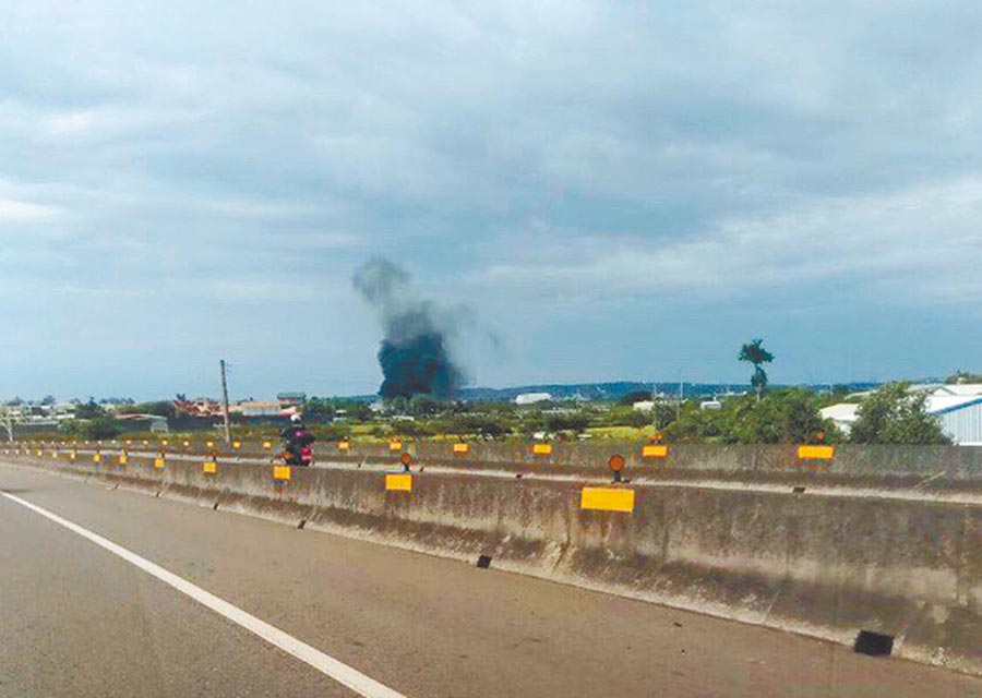 台军直升机坠落后大片黑烟直冲天际。(图片来源:台湾“中时电子报”)
