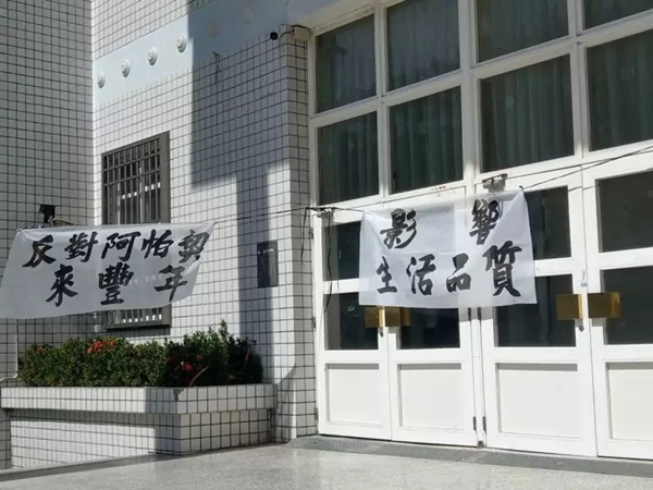 台东县政府18日举办“阿帕奇规划进驻台东”说明会,民众在场外挂布条抗议。(图片来源:台湾《联合报》)