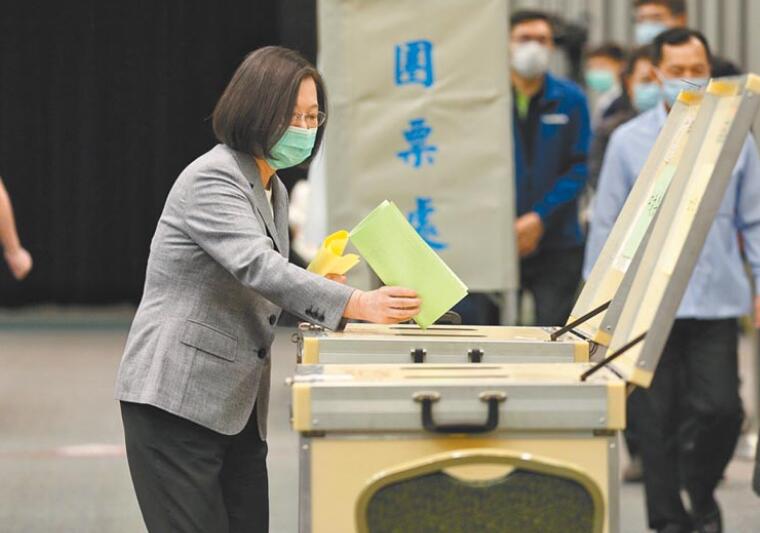 民进党党代会19日登场,党主席蔡英文参与中执委、中评委选举投票。(图片来源:台湾“中时电子报”)