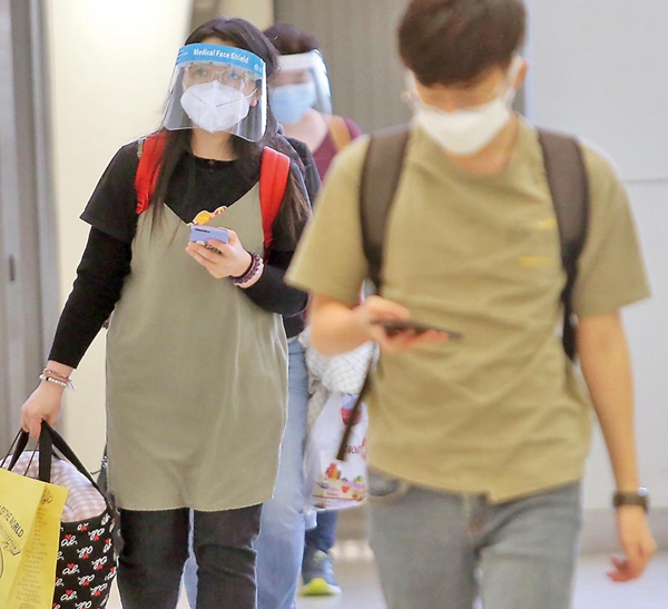 岛内新增2名境外输入新冠肺炎确诊病例。图为旅客抵达桃园机场。(图片来源:台湾“中时新闻网”)