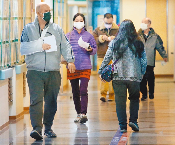 岛内出现首例感染英国变种病毒死亡病例。图为早前桃园医院内民众前往看诊。(图片来源:台湾“中时新闻网”)