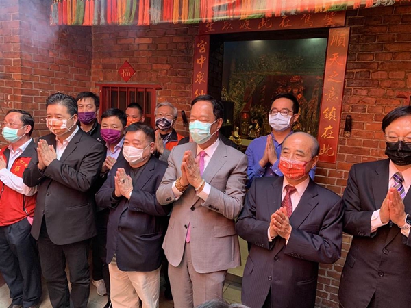 王金平今和郭台铭合体前往新北土城顺圣宫参拜。(图片来源:台湾“中时新闻网”)