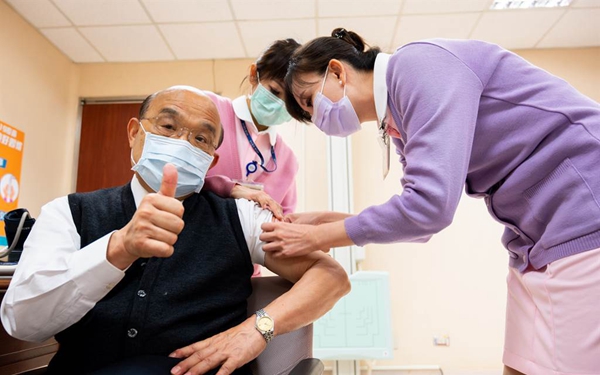 苏贞昌闭门打疫苗遭疑“打假针”。(图片取自台媒)