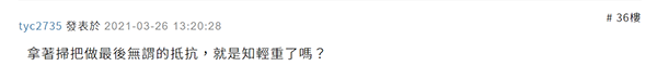 针对台湾艺人的上述正义行动,台行政机构负责人苏贞昌出言讥讽道,有些人不知轻重,为了自己利益,不知道人权的重要。不少台湾网友在新闻下参与讨论,驳斥苏贞昌的荒谬言论。“拿着扫把做最后的抵抗就知道轻重了吗?”“支持勇敢的艺人”“人家艺人有脑能辨是非,你有吗?”