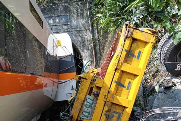 台铁列车被工程车砸出轨卡隧道 4人无生命迹象