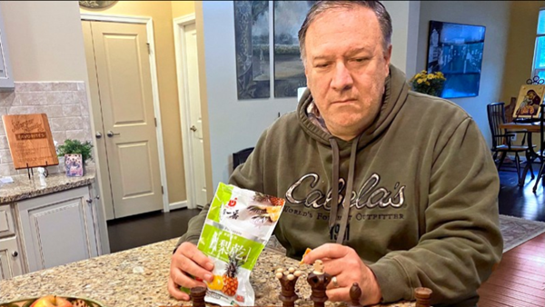 作秀!蓬佩奥吃台湾菠萝干 台外事部门暗示其访台几率很大。(图片来自台媒)