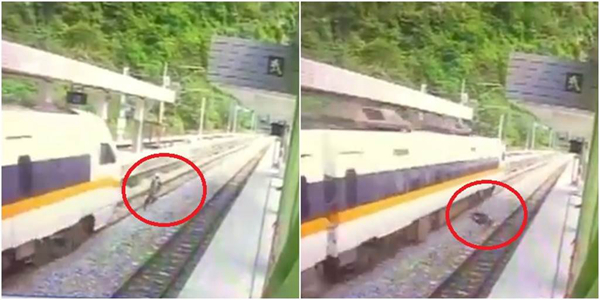 惊险画面曝光!工人违规穿越轨道,被台铁列车擦撞倒地