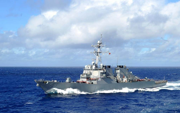 美国第七舰队伯克级导弹驱逐舰“柯蒂斯·威尔伯”号18日通过台湾海峡。