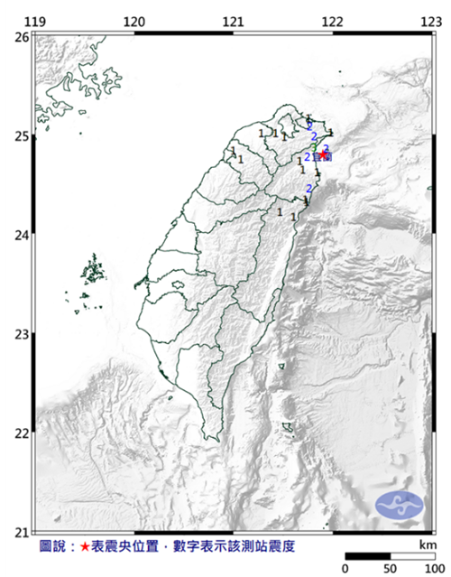 中国台湾网5月19日讯 据台湾“中时新闻网”报道,台湾近日停水、停电、疫情爆炸,现在又有地震。今天下午13:00,宜兰近海发生规模4.1级地震,地震深度13.5公里,震中在宜兰县政府东偏北方15.9公里,位于宜兰县近海,各地最大震度为宜兰县3级、新北市2级,基隆市、花莲县、桃园市、新竹县1级,台北也有感。