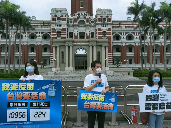 中国台湾网6月6日讯 据台湾“中时新闻网”报道,岛内疫情严峻,昨日(5日)新增37例死亡病例,创单日新高,大众却迟迟未等到疫苗缓解疫情。中国国民党团今日(6日)上午再赴台湾地区领导人办公室前抗议,由总召集人费鸿泰带领呼喊“人民要疫苗、台湾要活命”。针对美国宣称将赠台湾75万剂疫苗,国民党团书记长郑丽文表示,她想请问陈时中,台湾早就花钱买的505万剂美国莫德纳疫苗在哪?如美国目前可以捐赠全世界疫苗并帮助台湾,民进党当局应再花钱购入3000万剂,已购买的疫苗也应在6月底全部到货,让全民施打。