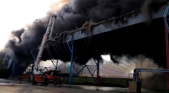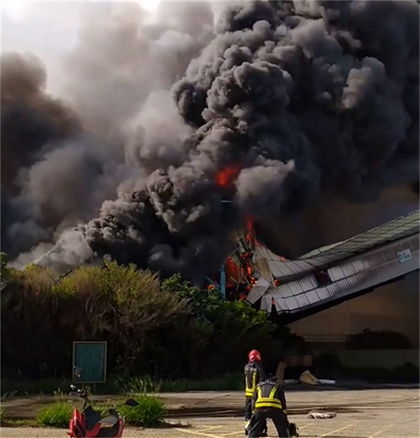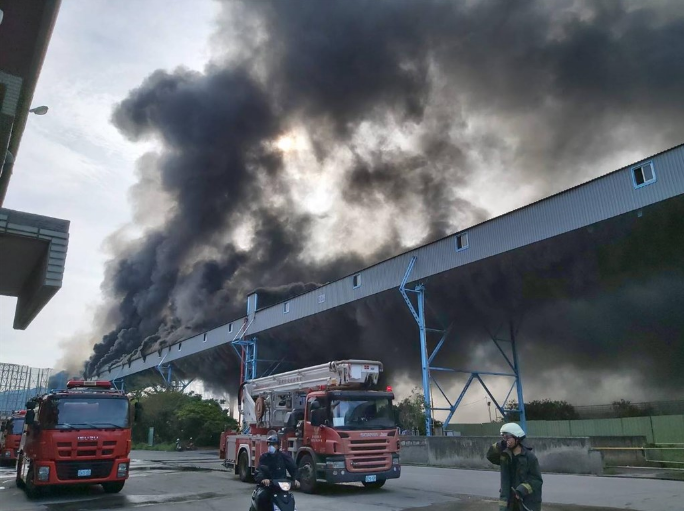 台中火力发电厂疑似输送带起火 消防队抢救中。(图片来自台媒)