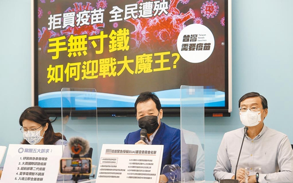 中国国民党党团28日召开“拒买疫苗,全民遭殃”记者会。(图片来源:台湾“中时新闻网”)