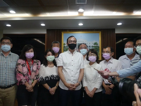 朱立伦(左四)今天拜会高雄市议会。(图片来源:台湾《联合报》)