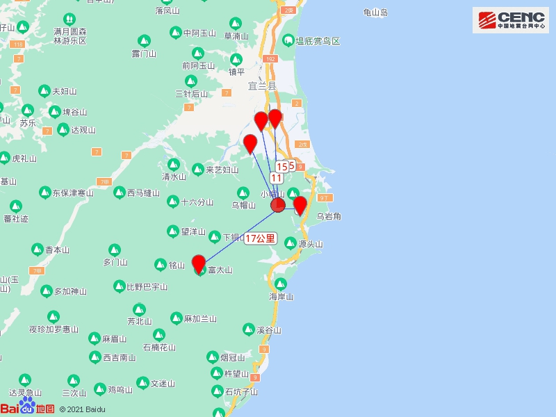 台湾宜兰县发生6.3级地震(图片来源:中国地震台网)