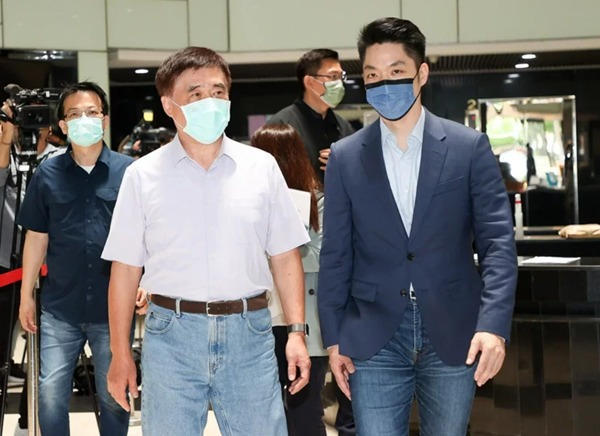 中国国民党台北市长参选人蒋万安(右)昨天拜会台北市前市长郝龙斌(前左),郝龙斌称赞他现在对于市政已经非常娴熟。(图片来源:台湾《联合报》)