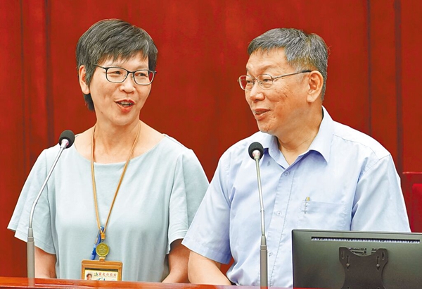 图为民众党主席、台北市长柯文哲(右)与民众党“立委”蔡壁如(左)。(图片来源:台湾“中时新闻网”)