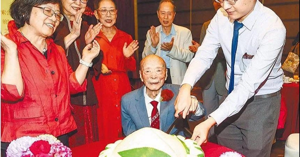 图为台北故宫同仁庆贺索予明(中)百岁寿诞。(图片来源:台湾“中时新闻网”)
