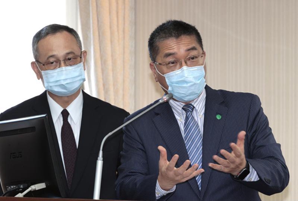 台当局“内政部长”徐国勇(右)与“警政署长”陈家钦(左)。(图片来源:台湾《联合报》)