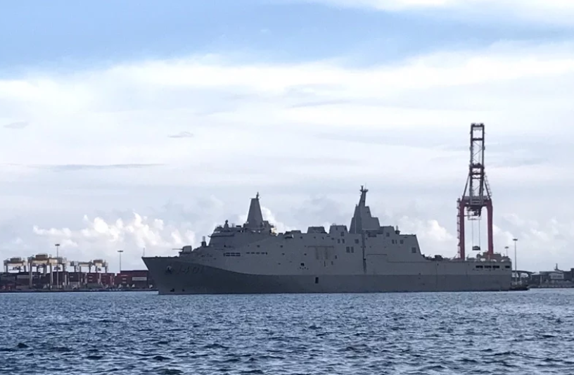 中国台湾网7月7日讯 据台湾《联合报》报道,由台船承建的台军方第一艘万吨级船坞运输舰“玉山舰”6日上午驶出台船码头,在高雄近海执行海上测试,消息曝光后,吸引不少岛内军事迷下午到港区拍摄。