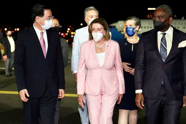 美国众议院议长佩洛西(中)2日晚抵台窜访。