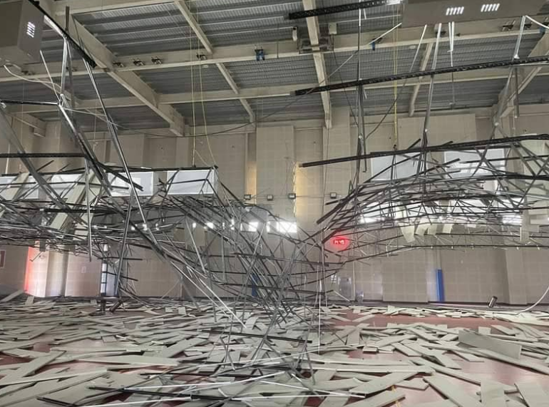 桃园八德运动中心馆方17日刚在社交媒体发文称五楼羽毛球馆装修完工,欢迎民众来体验,18日就立即表示,羽毛球场因地震致场地受损,暂停开放。据台媒发布的照片显示,桃园八德运动中心的天花板掉满地,甚至连管道也整个垂落到地面,现场凌乱不勘。然而此次地震,在桃园测得的最大震度为3级,整个运动中心却严重受损,不少民众质疑,这样的施工质量是否有问题。