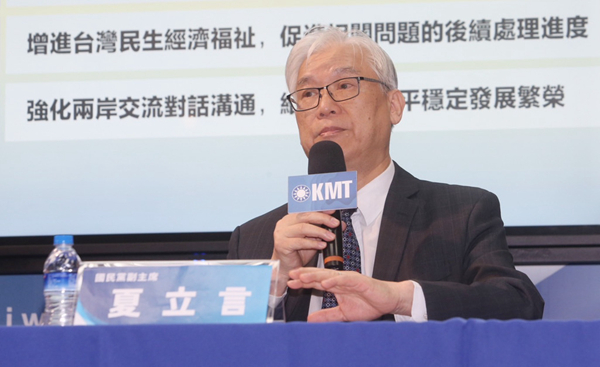 中国国民党副主席夏立言20日就日前大陆行进行成果报告。(图片来源:台湾“中时新闻网”)