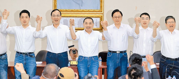 新北市长侯友宜(左三)17日获中国国民党征召参选2024台湾地区领导人。(图片来源:台湾“中时新闻网”)